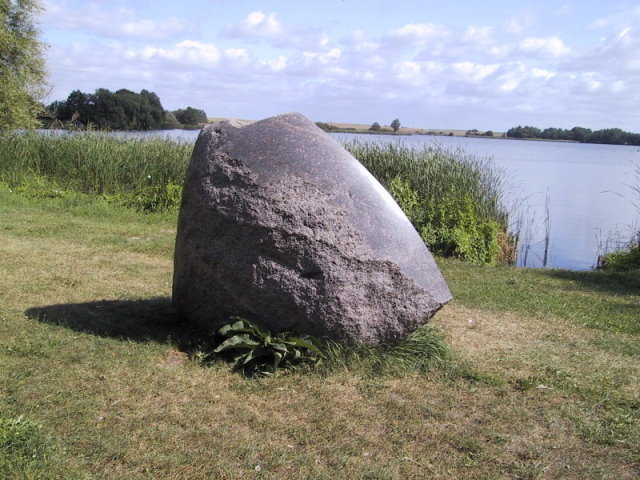 Nur ein riesengroßer Findling, aber: der Künstler Dorsten Diekmann aus Lemgo bearbeitet diesen so, dass er eine Dynamik und Bewegung in eine Richtung erhält. Durch Schleifen und Polieren kommen Strukturen und Farben zum Vorschein, die unter der rauhen Schale verborgen waren. Man wird zwangsläufig von dem Stein aufgefordert, diesen zu berühren und zu streicheln. Erst jetzt erkennt man den Unterschied zwischen den verschiedenen Seiten: grob, fein, glatt, poliert. Ein kleiner, unbearbeiteter Findling in unmittelbarer Nähe weist auf den Ursprung der Steine hin.