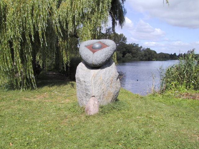 Eine auffällige und wie ich finde, besonders schöne und interessante Skulptur; von Tom Wagenaar aus den Niederlanden geschaffen. Der Künstler verwendet hier zwei unterschiedliche Materialien: Stein und Eisen. Diese sollen auf die Frühzeit unser Kultur hinweisen. Das im oberen Bereich vorhandene Eisen rostet und ist als bräunliche Flüssigkeit sichtbar. welche am Stein hinunter läuft. Der Künstler zeigt so das Rinnen der Zeit und will außerdem erreichen, dass dieses Werk im Verlaufe der Geschichte weiter auf ihn aufmerksam macht.